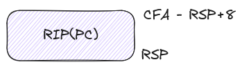 Here we can see that rip (x86-64 program counter) can be computed by subtracting 8 from our previously calculated CFA. A visual representation of this can be seen below: