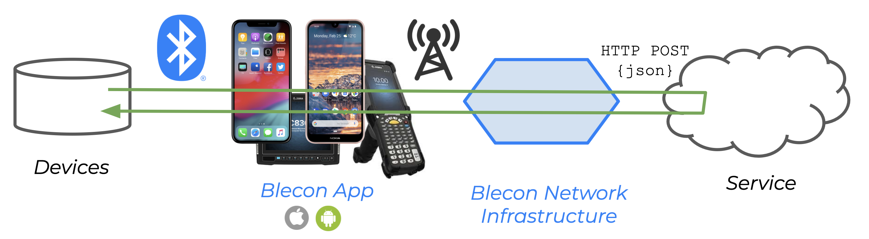 Blecon devices are associated with a particular network. When any of these devices make a request, it is routed to a request webhook that can be configured for the network.